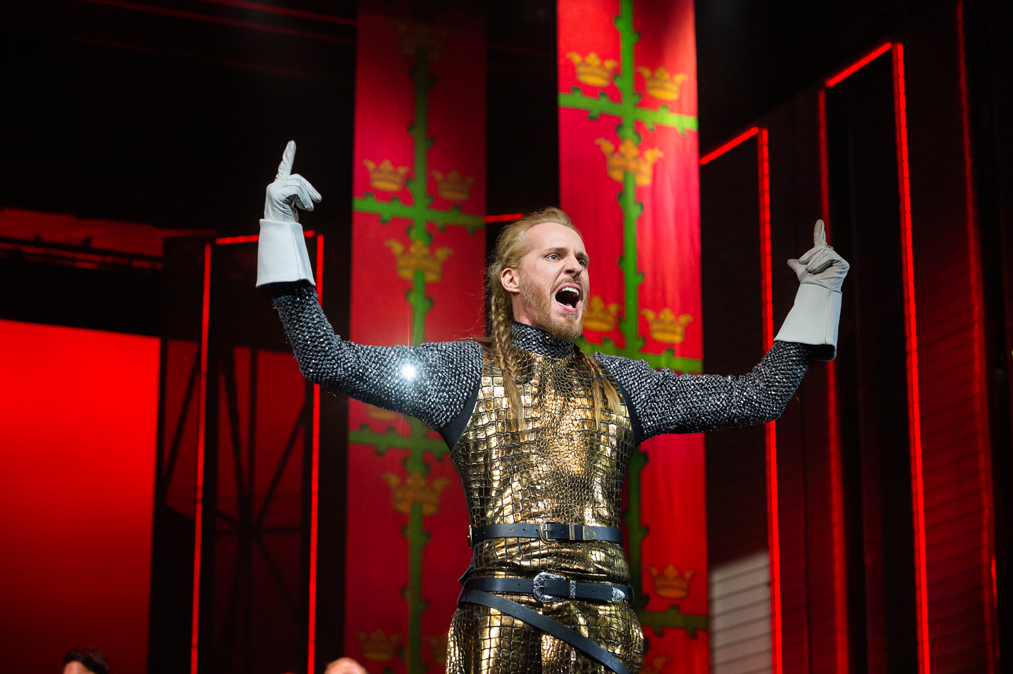 Christian Schöne ist als mordgieriger und skrupelloser “King John“ eine der prägendsten Figuren der Aufführung. Keiner kann so fies, durchtrieben und arglistig agieren wie er. Der auf böse Rollen spezialisierte Usinger ist der neue Kristian Vetter der deutschsprachigen Musicalszene.
