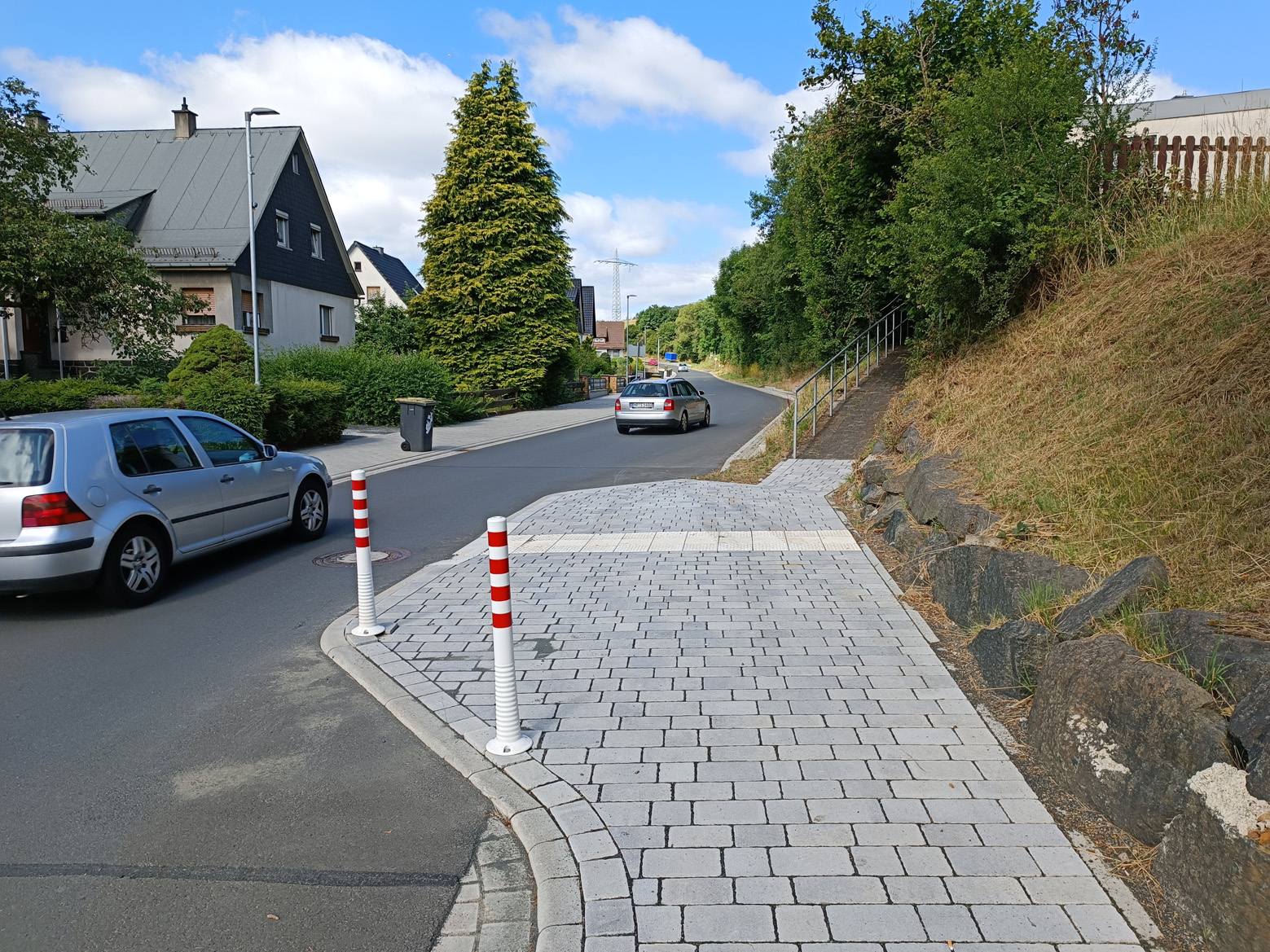 Der Wettbewerbsbeitrag der Angelburger, mit dem sie gegen ihre Eschenburger Nachbarn um den Titel der unsinnigsten Verkehrseinrichtung konkurrieren. Was diese malerische und wirklich hübsch gepflasterte Insel soll, erschließt sich nicht jedem auf Anhieb.
